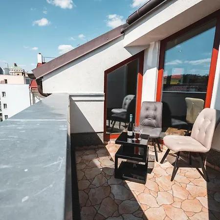 Point Flat, Beautiful View From Terrace To Prague Castle Apartment is fitted with an equipped kitchen that has facilities such as an oven and a dishwasher. The nearest airport is Vaclav Havel Prague, 30 km from the apartment, and Doliny bus station is only 10 minutes' walk away.